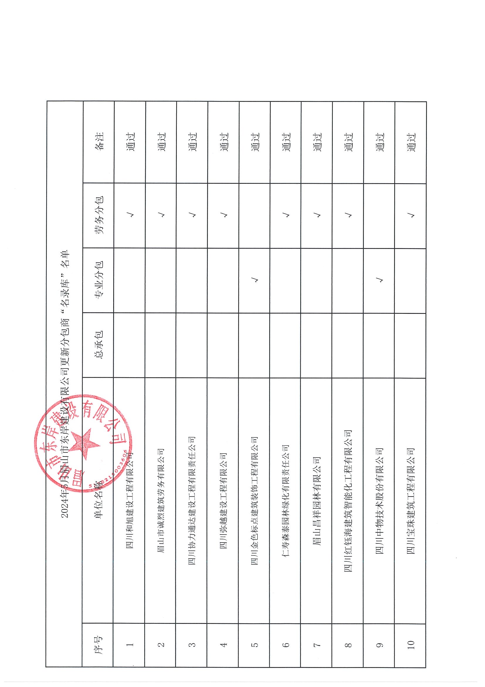 关于2024年5月份更新分包商“名录库”的公告